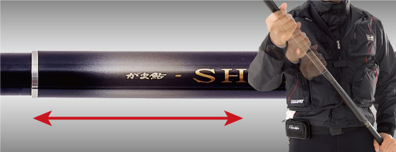 また、超高弾性カーボンを適材適所に使用することで、上位クラスのバランスの良さを実現し、短さも相まって正確なロッド操作が実現可能です。